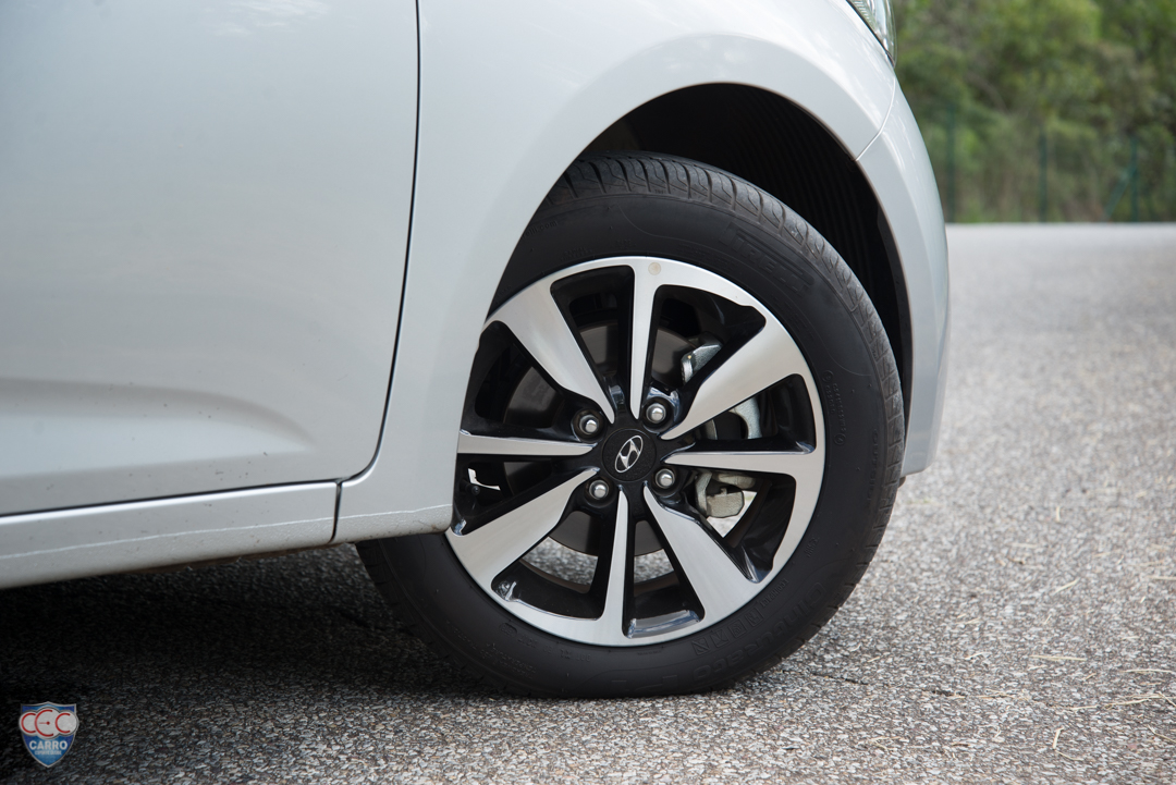 Dianteira, independente, tipo McPherson e barra estabilizadora; traseira independente, com barra estabilizadora / 5,5 x 15 polegadas de liga leve/ 185/60 R15